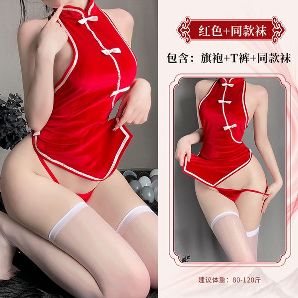 BT2693-性感內衣旗袍誘惑小胸女睡衣火辣開襠免脫激情套裝