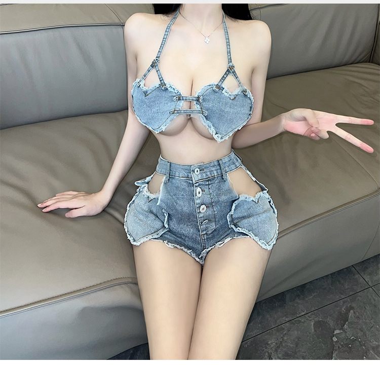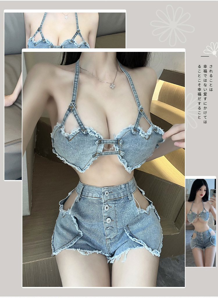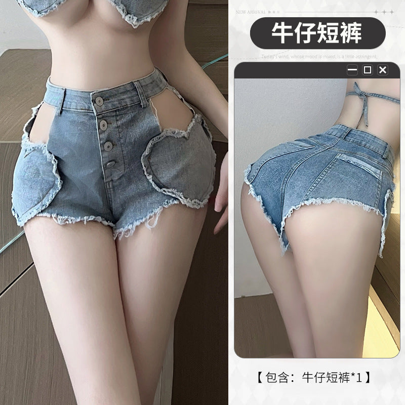 BT2854-性感內衣情趣內衣激情免脫火辣誘惑床上調情牛仔超短褲制服女睡衣