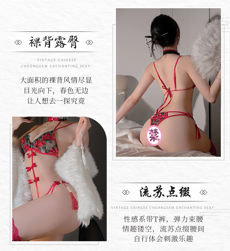 BT2911-性感內衣情趣內衣古風刺繡旗袍約會戰袍制服誘惑免脫女睡衣套裝睡裙