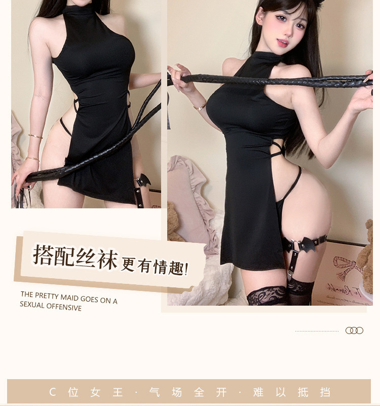BT2966-性感高開衩美裙情趣內衣無袖鏤空純欲高開衩旗袍驚豔睡裙睡衣