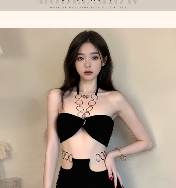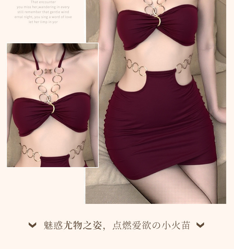 BT6606-情趣內衣性感夜店性感裙純欲誘惑掛脖金屬環露背包臀裙女睡衣睡裙
