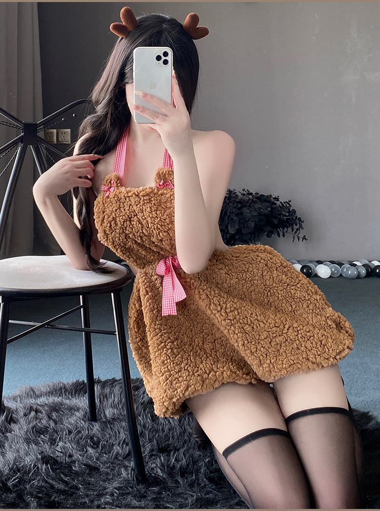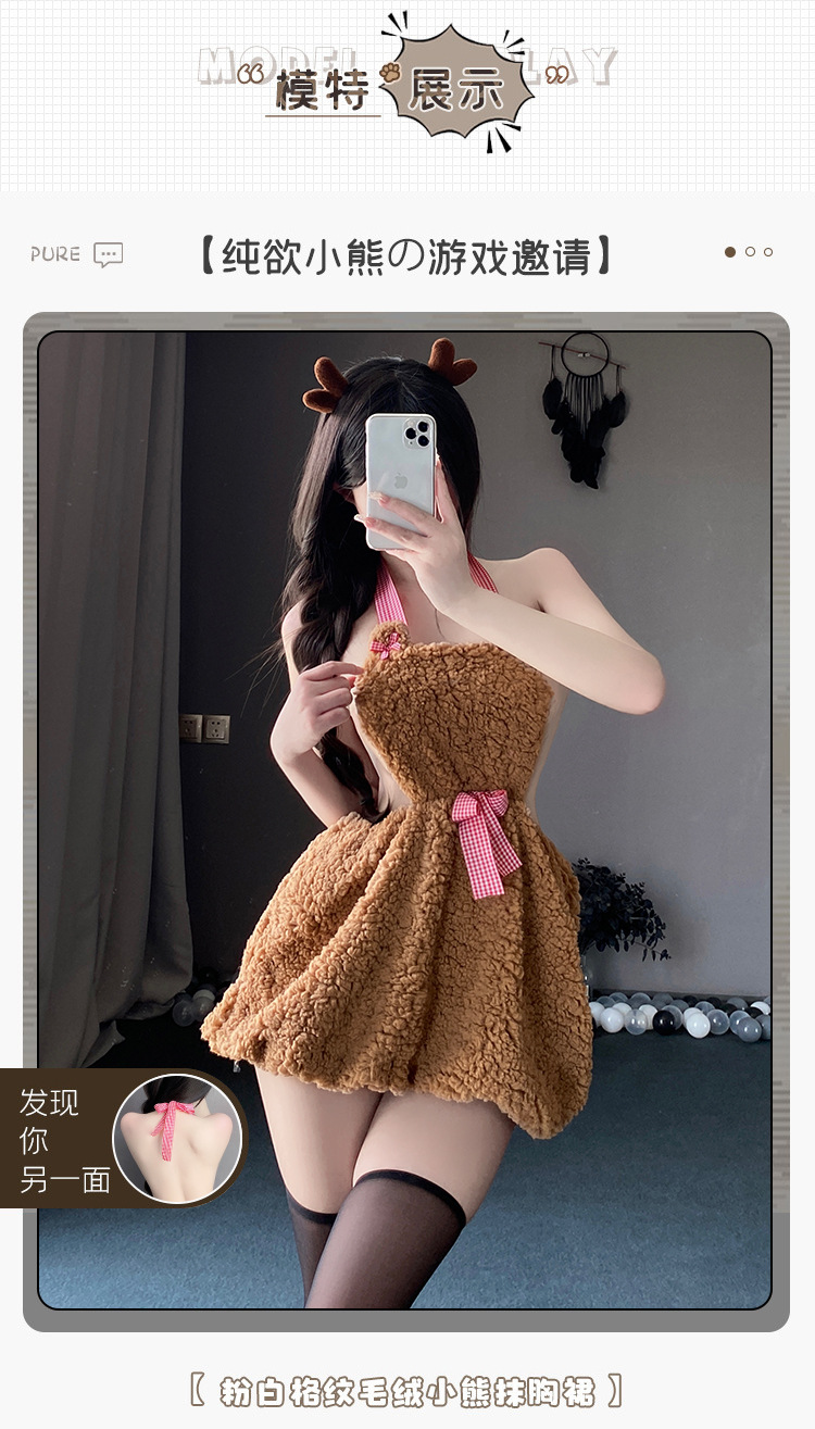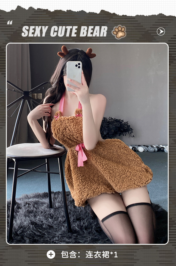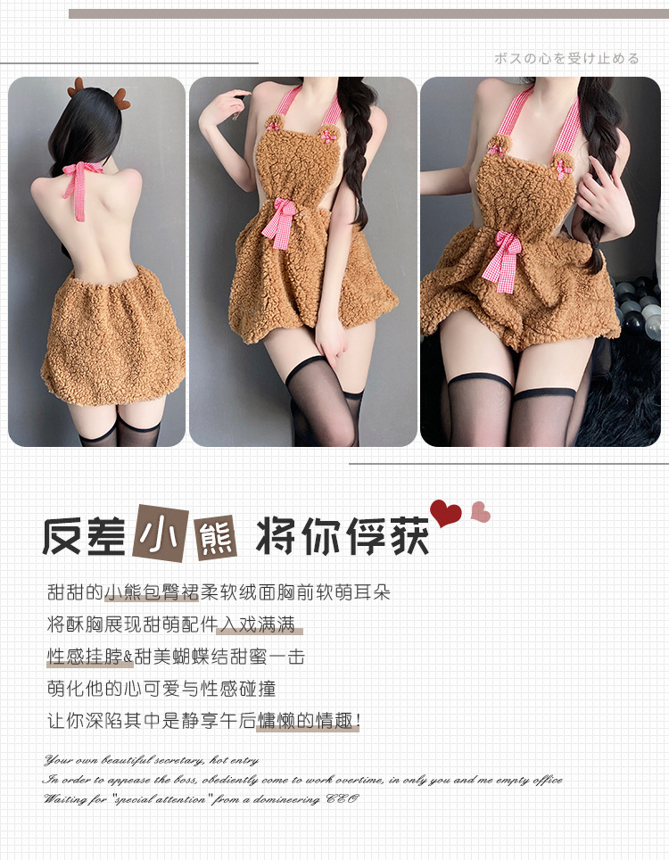 BT8223-性感內衣純欲小熊掛脖睡裙露背誘惑睡裙二次元內衣可愛制服套裝角色扮演