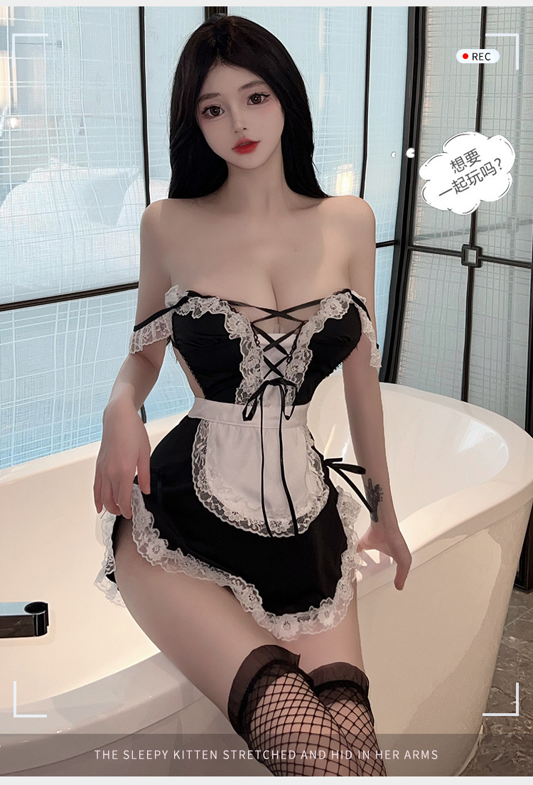BT8410-性感內衣情趣內衣女深V誘惑蕾絲女僕綁帶露背女傭角色扮演裝女睡裙