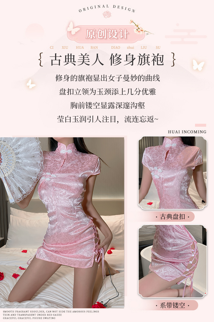 BT8420-性感內衣情趣內衣復古提花性感古典旗袍制服誘惑女睡衣戰袍套裝睡裙
