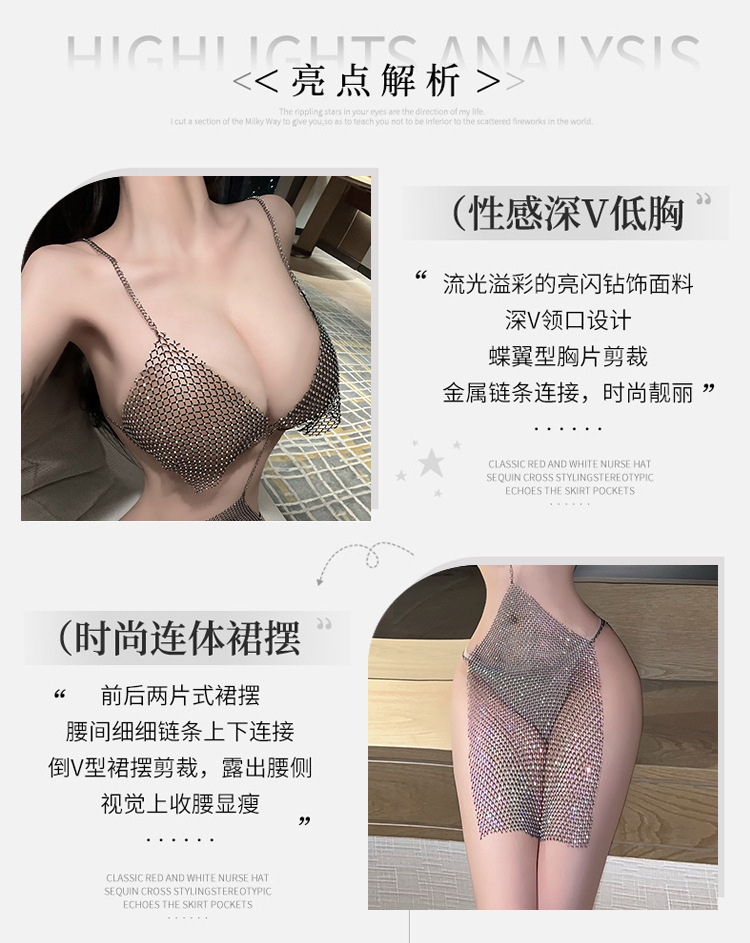 BT8520-性感內衣情趣內衣性感吊帶連體透視璀璨夜店女郎連衣裙制服套裝女睡衣睡裙