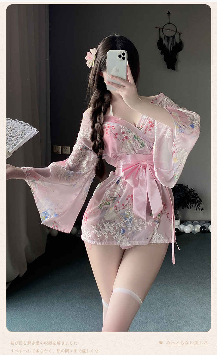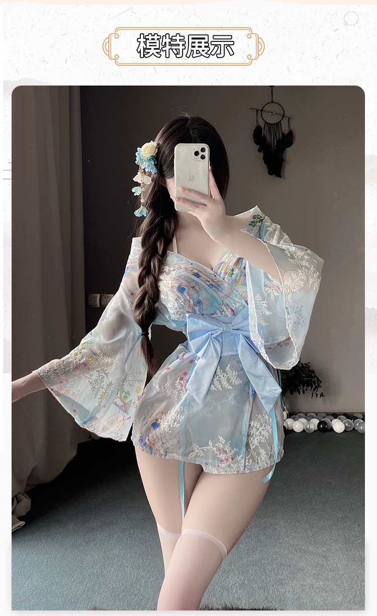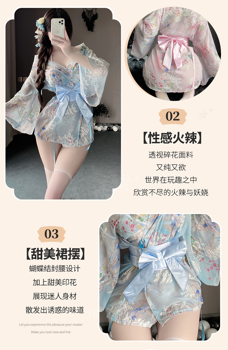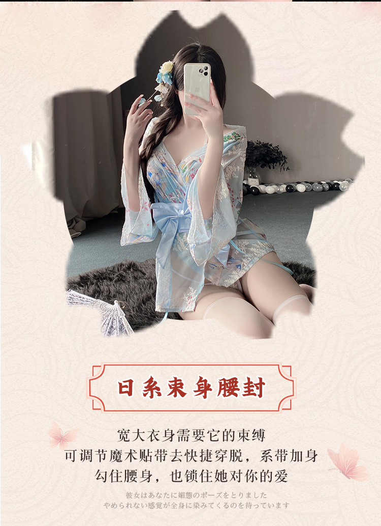 BT8575-性感內衣情趣內衣女和服浴袍制服誘惑印花日系蝴蝶結性感日式套裝睡衣睡裙