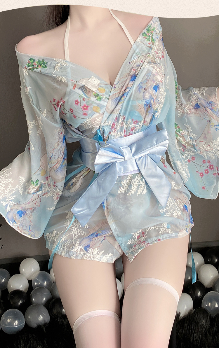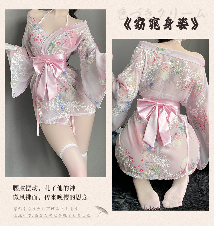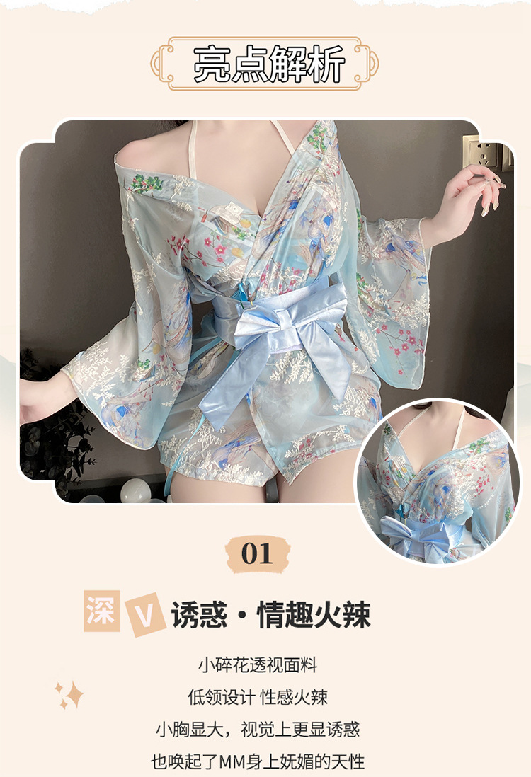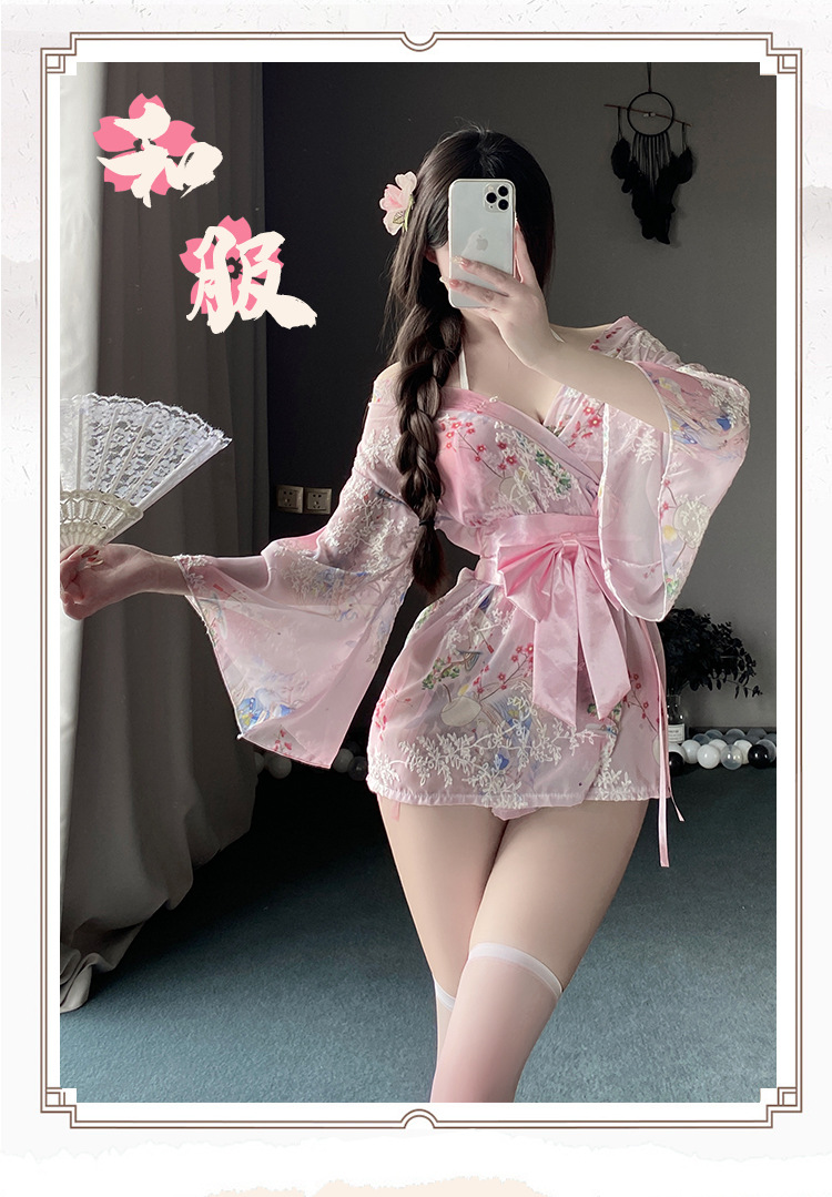 BT8575-性感內衣情趣內衣女和服浴袍制服誘惑印花日系蝴蝶結性感日式套裝睡衣睡裙