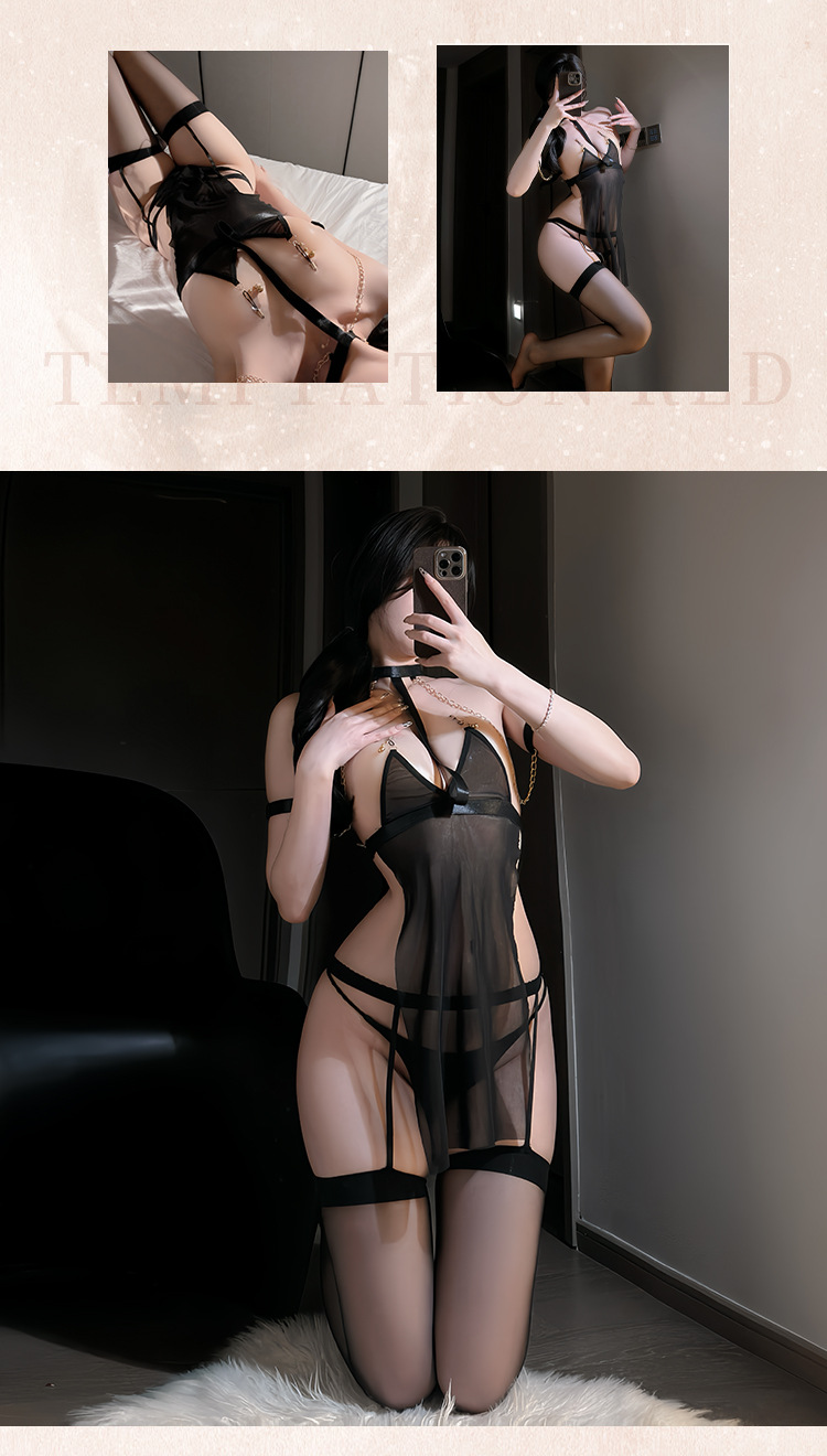 BT8618-性感內衣情趣內衣性感透視網紗女睡衣開叉誘惑激情免脫SM制服火辣女睡裙
