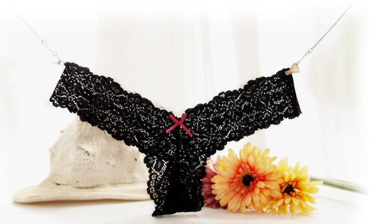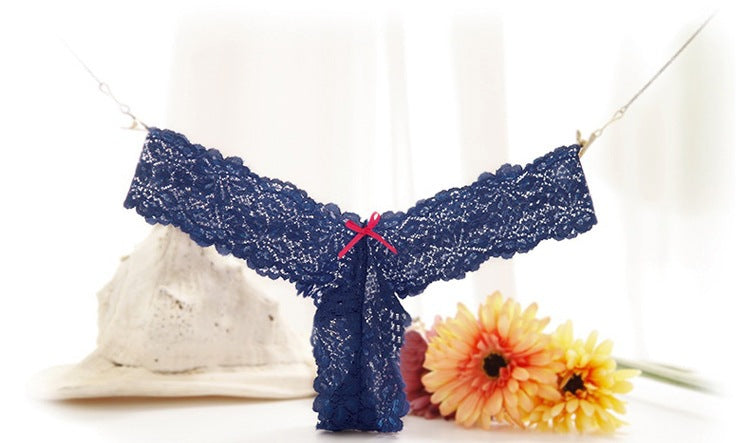 CE3048-純蕾絲性感內褲女蝴蝶結低腰女士內褲誘惑丁字褲透明T褲
