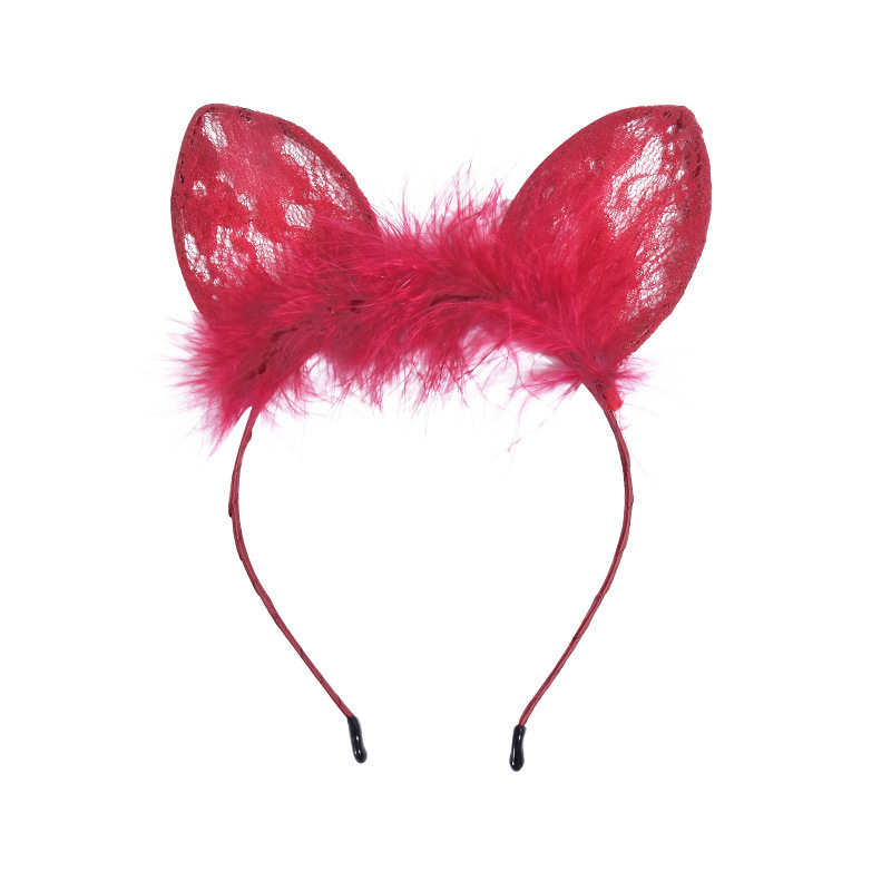 CE4099-韓國可愛蕾絲貓耳朵發箍女網紅髮飾頭箍性感兔耳化妝