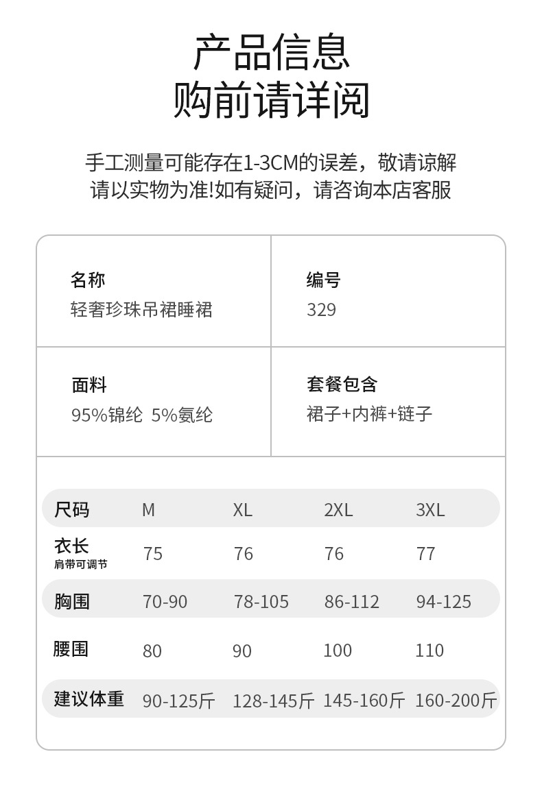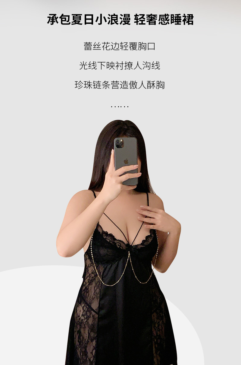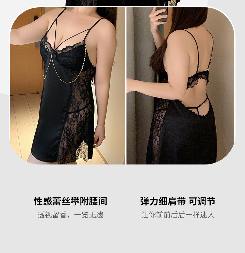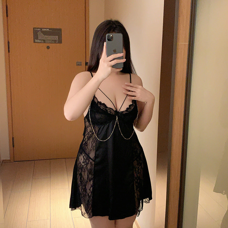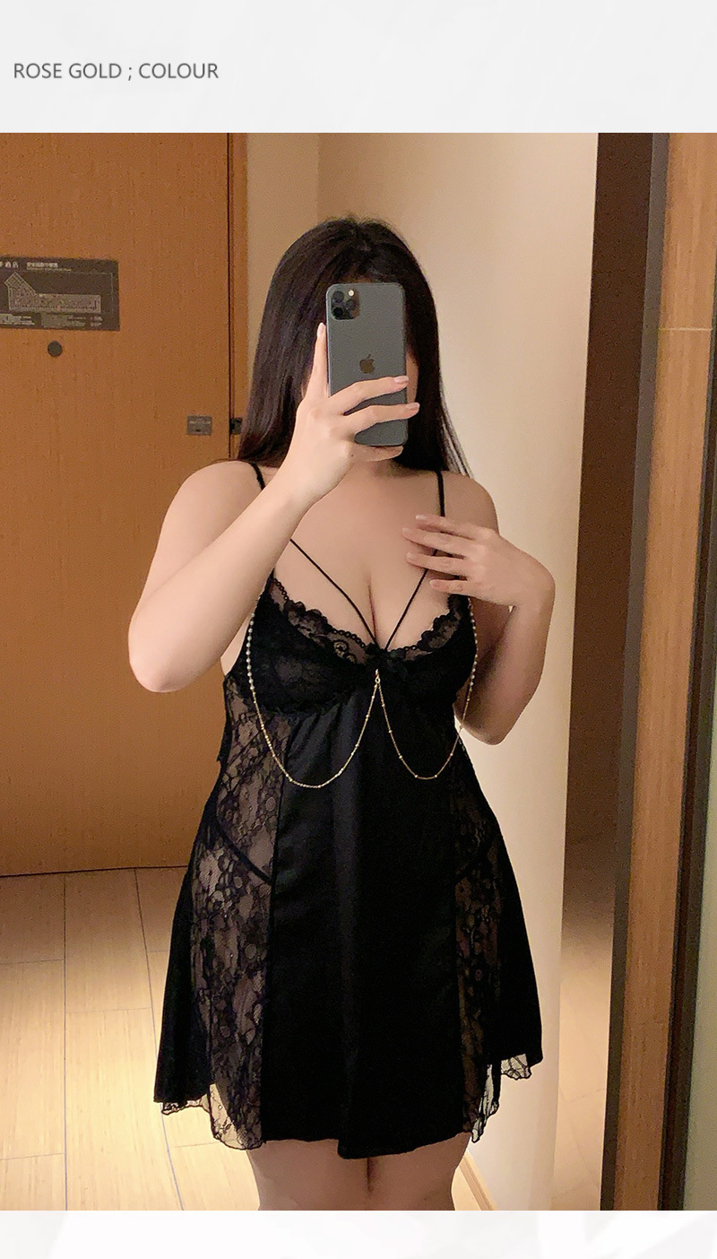 CS329-大碼性感蕾絲吊帶睡裙家居服冰絲薄款透視睡衣純欲風珠鏈睡裙夏女睡衣睡裙