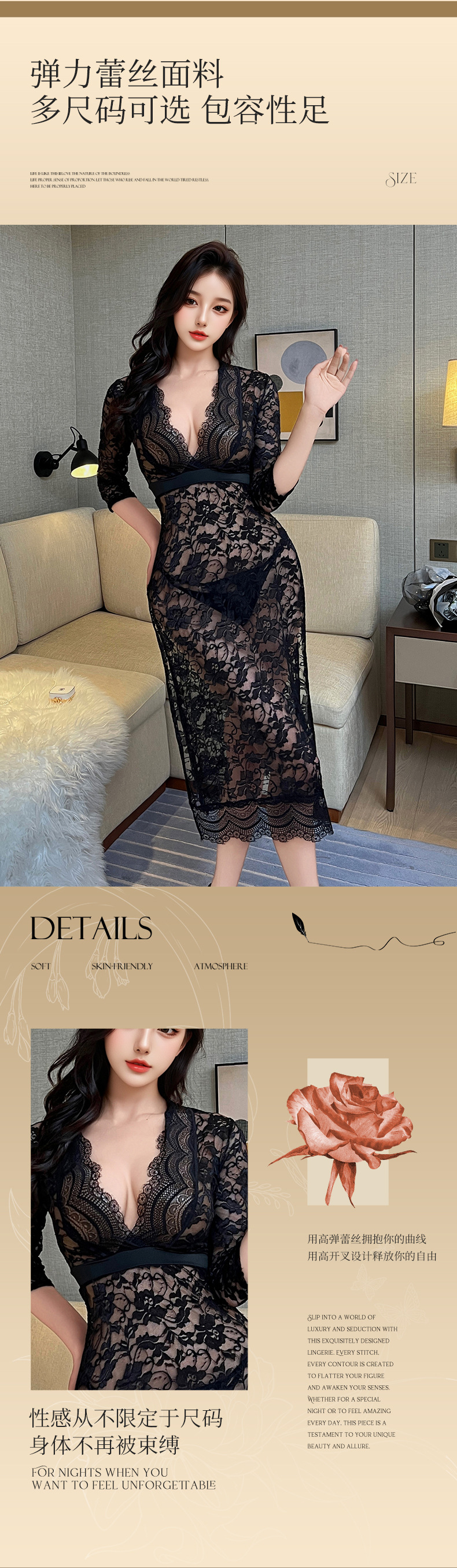 CS543-大尺碼情趣內衣連衣裙包臀緊身性感御姐裙裝純欲長裙戰袍女睡衣睡裙
