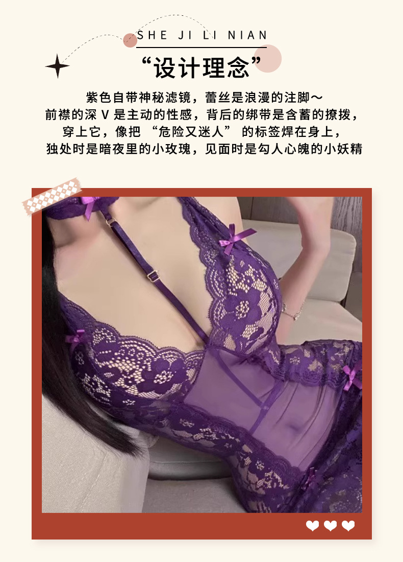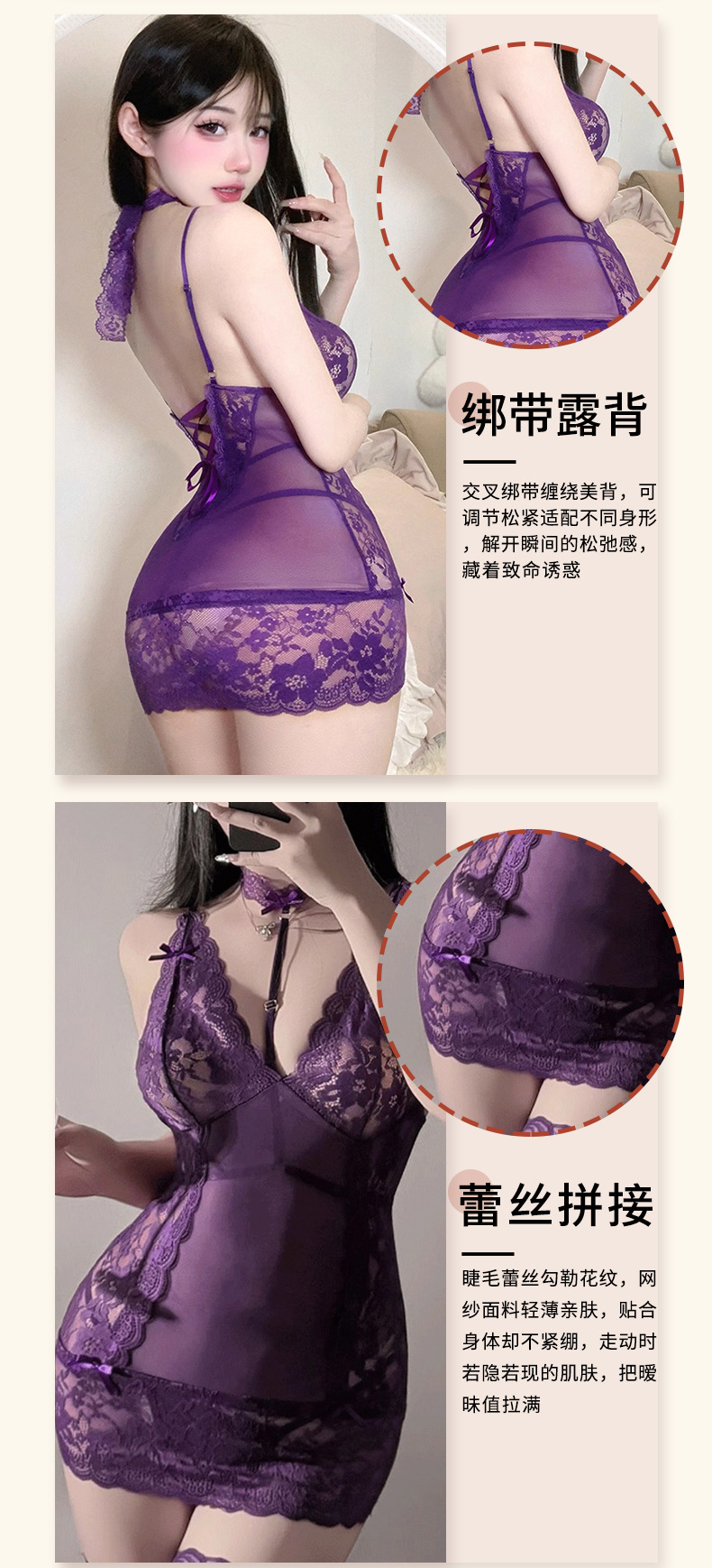 CS568-大碼情趣內衣深V透視裝蕾絲性感情侶戰袍純欲紫色套裝代發批發女睡衣睡裙