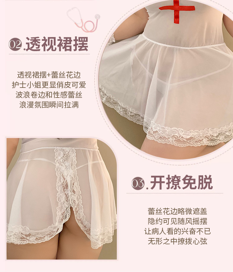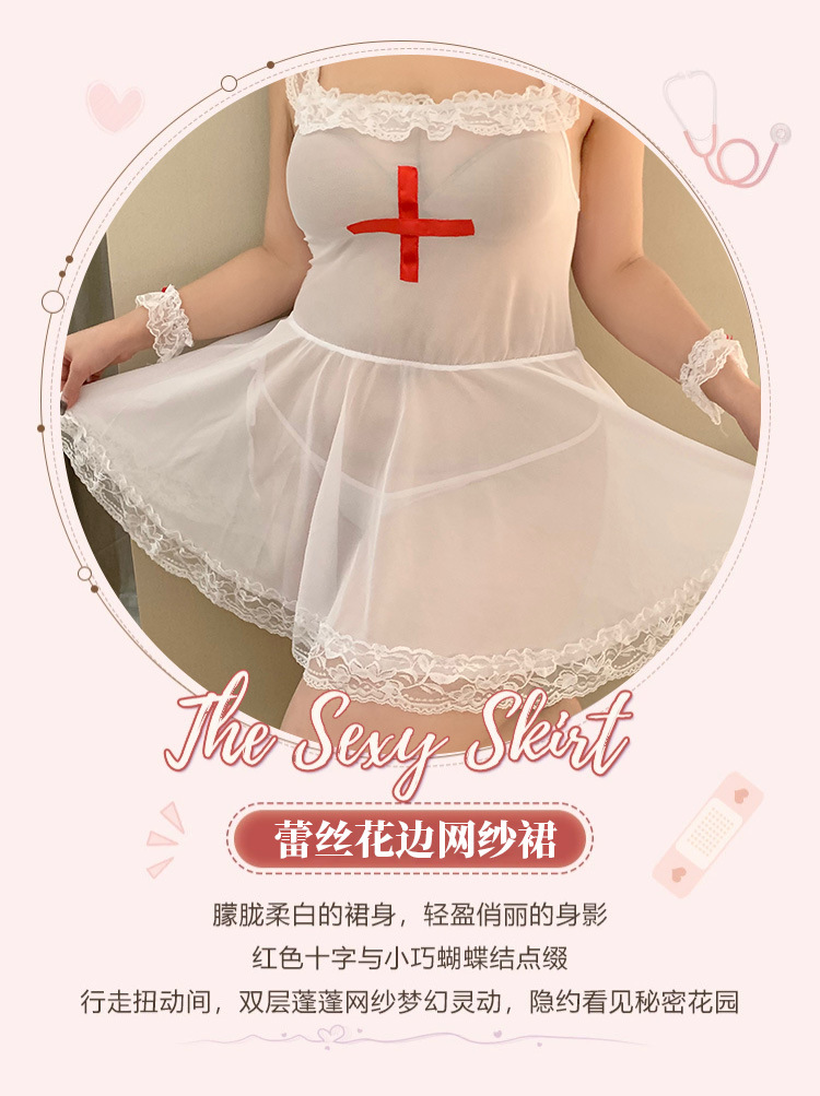CT101-大碼情趣內衣護士制服透明露乳網紗胖MM睡裙角色扮演加肥加大