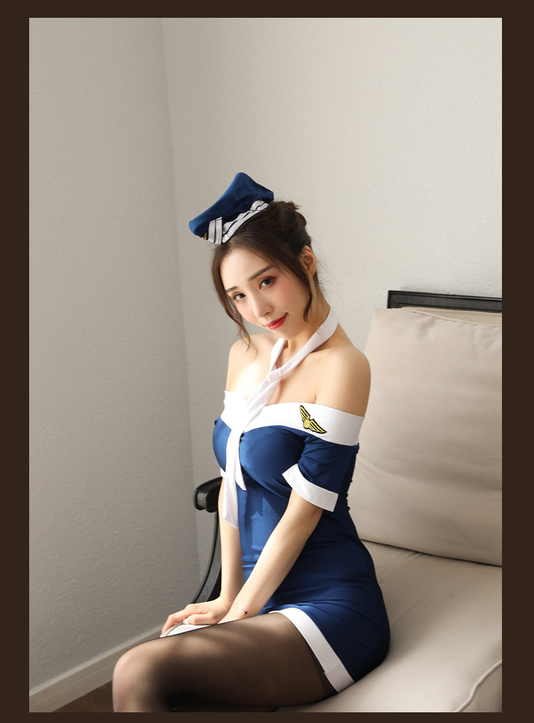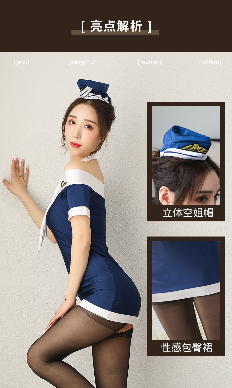 CT160-加大碼情趣空姐裝制服性感絲襪透視包臀短裙開檔情趣內衣激情套裝