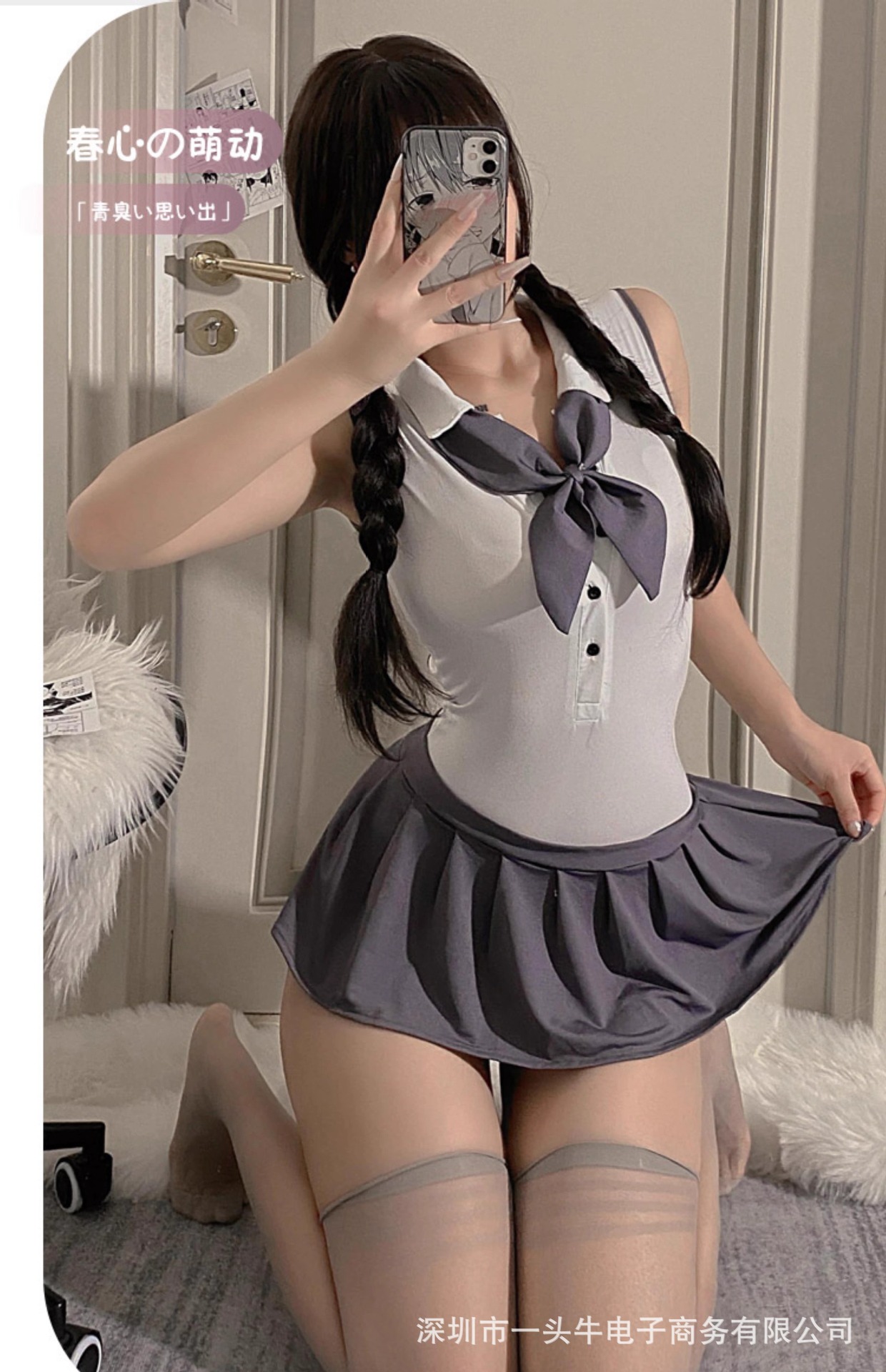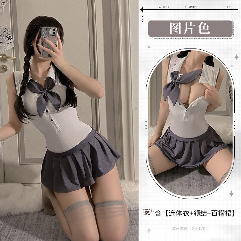 CT388-大碼情趣內衣性感睡衣jk制服誘惑校園風純欲私房連體衣短裙女睡衣睡裙