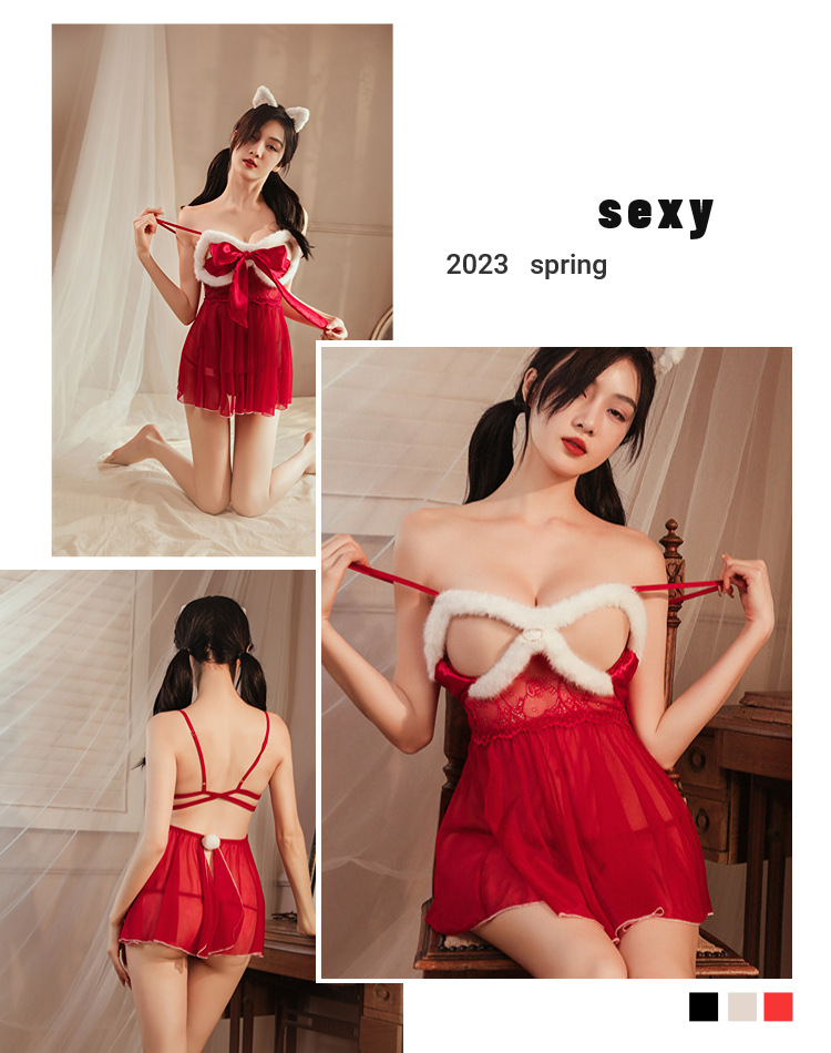CT427-聖誕禮物紅色毛毛兔女郎情趣內衣新款誘惑大碼胖MM激情誘惑